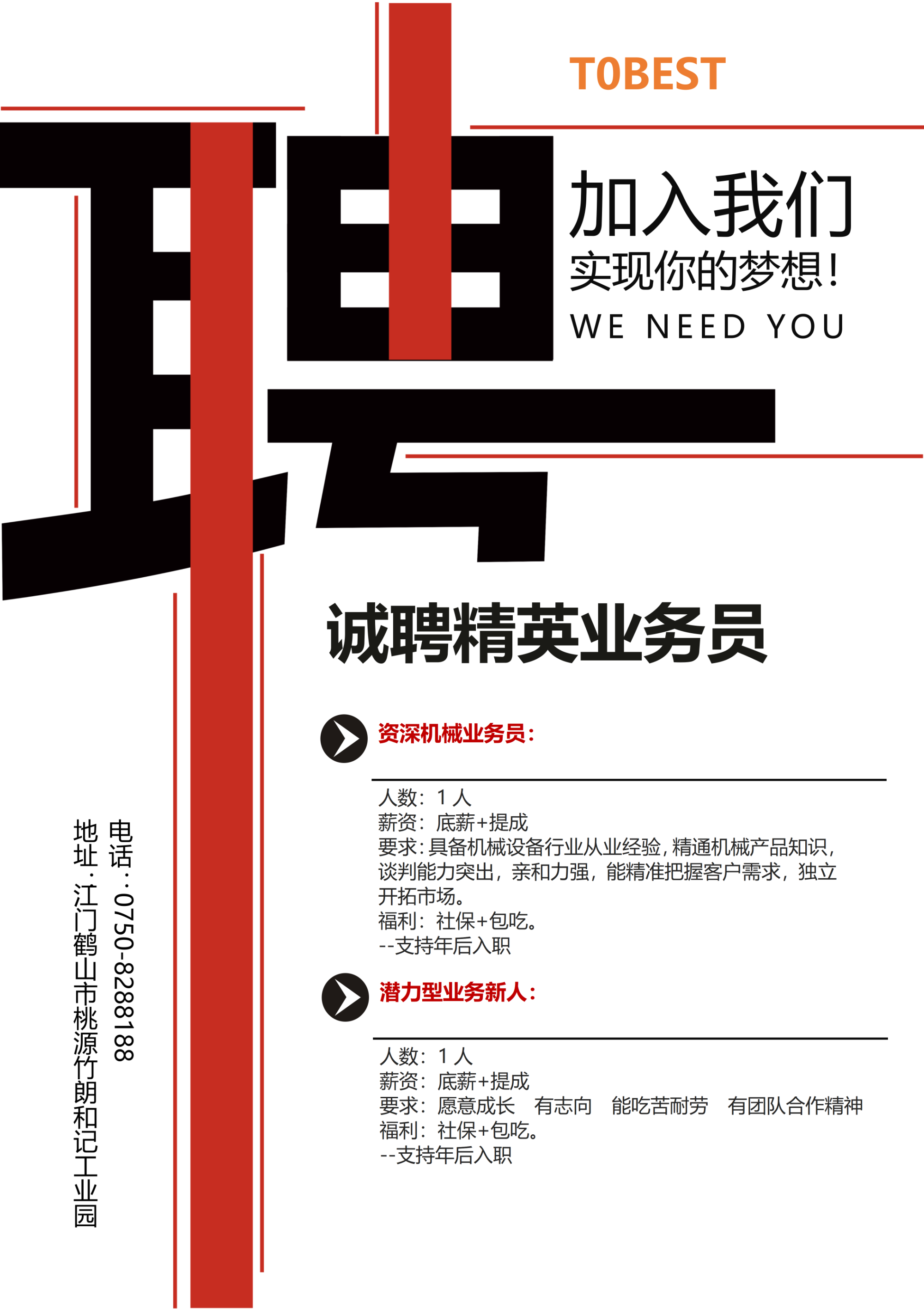 • 岗位要求:具备机械设备行业从业经验,精通机械产品知识,谈判能力突出,亲和力强,能精准把握客户需求,独立开拓市场。